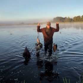 Efter et par omgange, trak de to af ænderne sig, og fløj tilbage og smed sig, uden for skudhold. Den sidste and tog dog et par runder mere, og begyndte nu selv, at kalde. Jeg forsøgte at efterligne andens kald, og kunne med det samme se en reaktion. Efter hvad der har været et par minutter i alt, besluttede anden sig endelig for at komme ind til lokkerne, og hundemanden kunne nedlægge den i et flot skud, i mens vi andre så på – Sikke en slutning, på et fedt morgentræk!