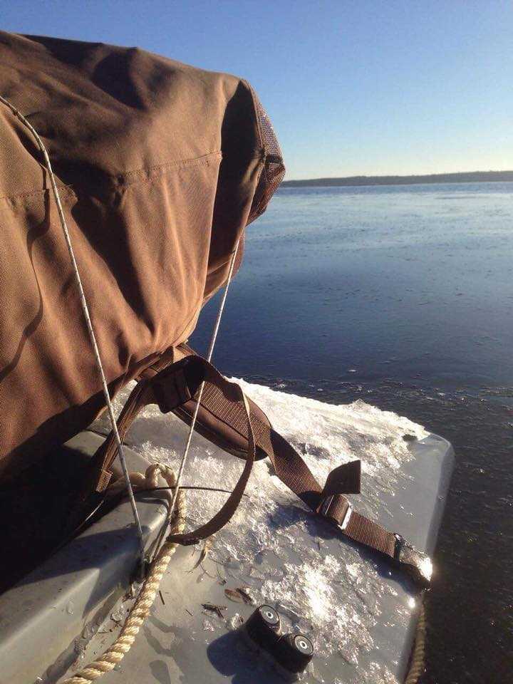Sund fornuft og en redningsvest (gerne selvoppustelig) bruges, medens jeg går eller stager ud til jagtspottet og under transporten hjem. Der skal ifølge dansk lovgivning være en redningsvest pr. person i prammen.