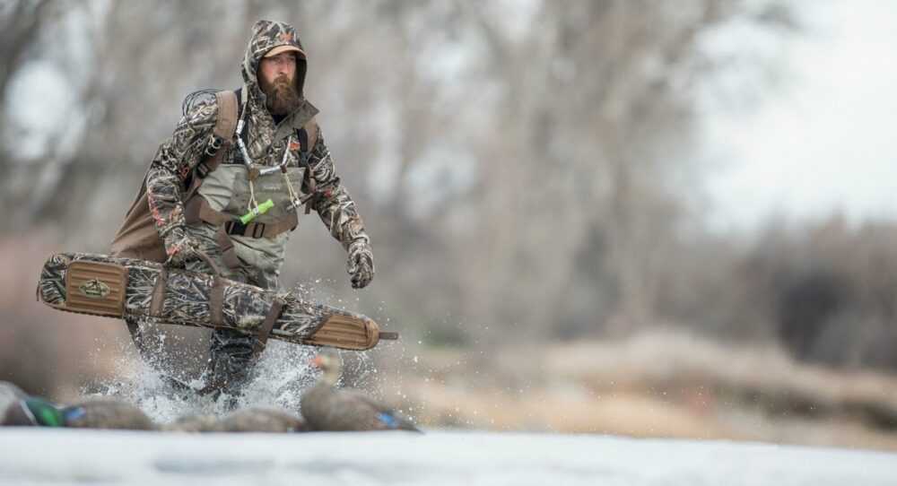 Når der jagtes på oversvømmede marker, eller man sidder i et skjul med fødderne i vand, er det nødvendigt med gummstøvler, skridtstøvler eller waders. Åndbare waders er kommet for at blive og i U.S.A er rigtig mange jægere gået væk fra at benytte store, tunge 5 mm neoprenwaders med op til 1600 gram Thinsulate i støvlerne, til at bruge åndbare waders. Her tilpasser man sin underbeklædning til vejret og vandtemperaturen.