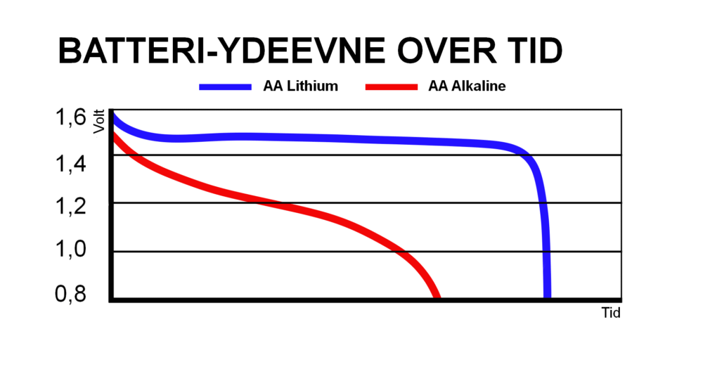 Valg af batterier kan virke simpelt. Det er vel bare i med et sæt AA batterier fra supermarkedet og så ud i terrænet, ikke også? Nej så simpelt er det ikke helt. Der er nemlig en del faktorer som spiller ind, på valget af batteri. Så lads os lige gå igennem de 3 hovedtyper af batterier og deres egenskaber: