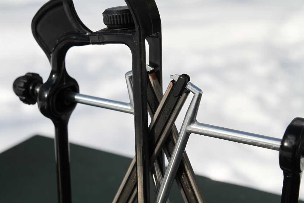 De to slibesten som man kører knivbladet ned af, kan stilles i tre forskellige vinkler: 20, 25 & 30 grader. Jo mindre vinkel, jo skarpere kniv, men også mere sart klinge.