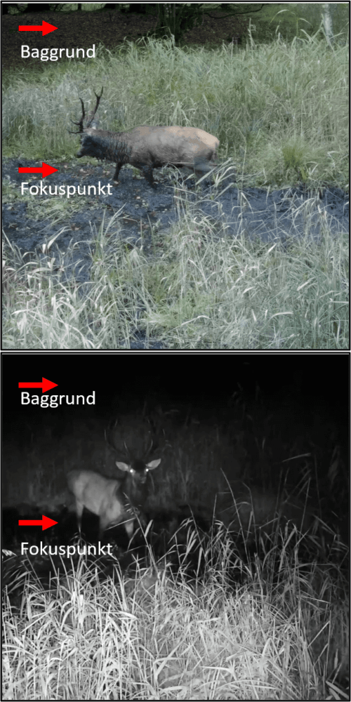 Sørg for at kameraet får et fokuspunkt dvs. en baggrund af buske, træer, en fast mur eller lignende, som IR-lyset kan reflektere i. Jo tættere baggrunden er, jo bedre er kvaliteten på natoptagelser.