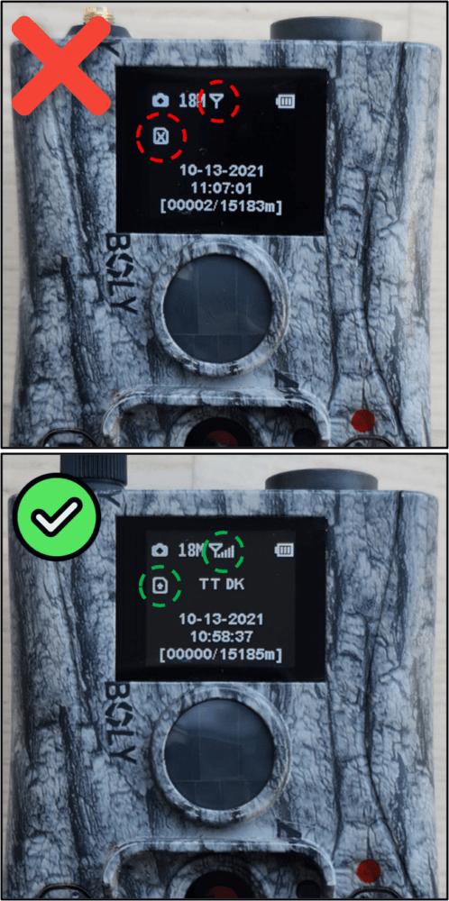 - Tjek at der er en god netværksdækning i området ved den teleudbyder, du vælger til kameraets simkort. Kameraet skal vise 4-5 signalstreger på skærmen for at sendefunktionen fungerer optimalt.