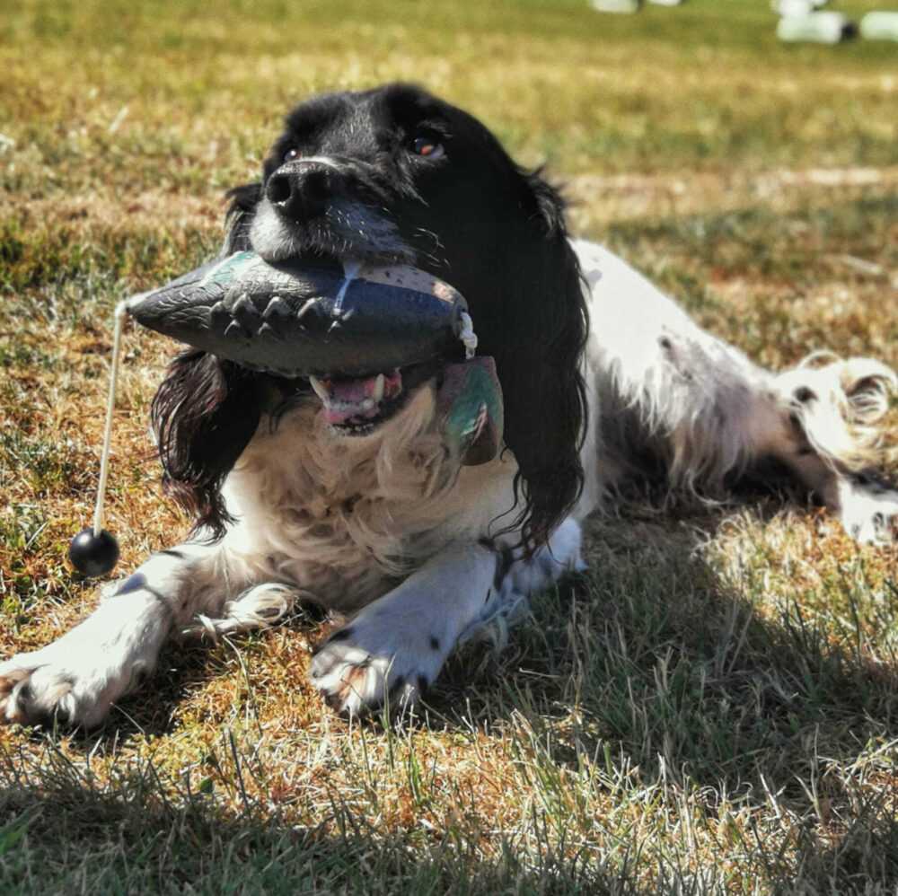 Det robuste materiale gør træningsfuglen velegnet til apportering hele året.
