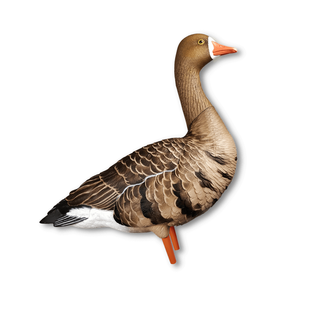 Avian-X Pinktfoot er malet med den samme revolutionerende matte og ultravedhæftende maling, som du kender fra Avian-X lokkeænder. Gæssene skinner ikke ved test med UV lys.