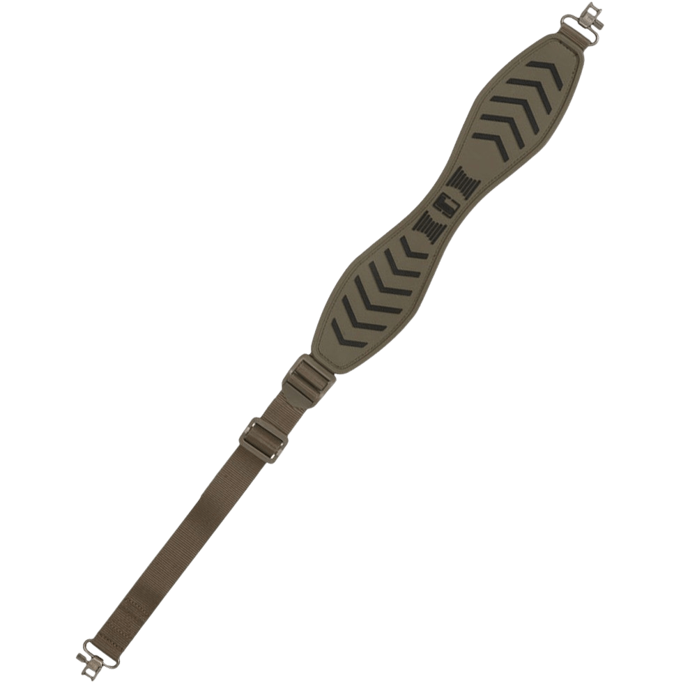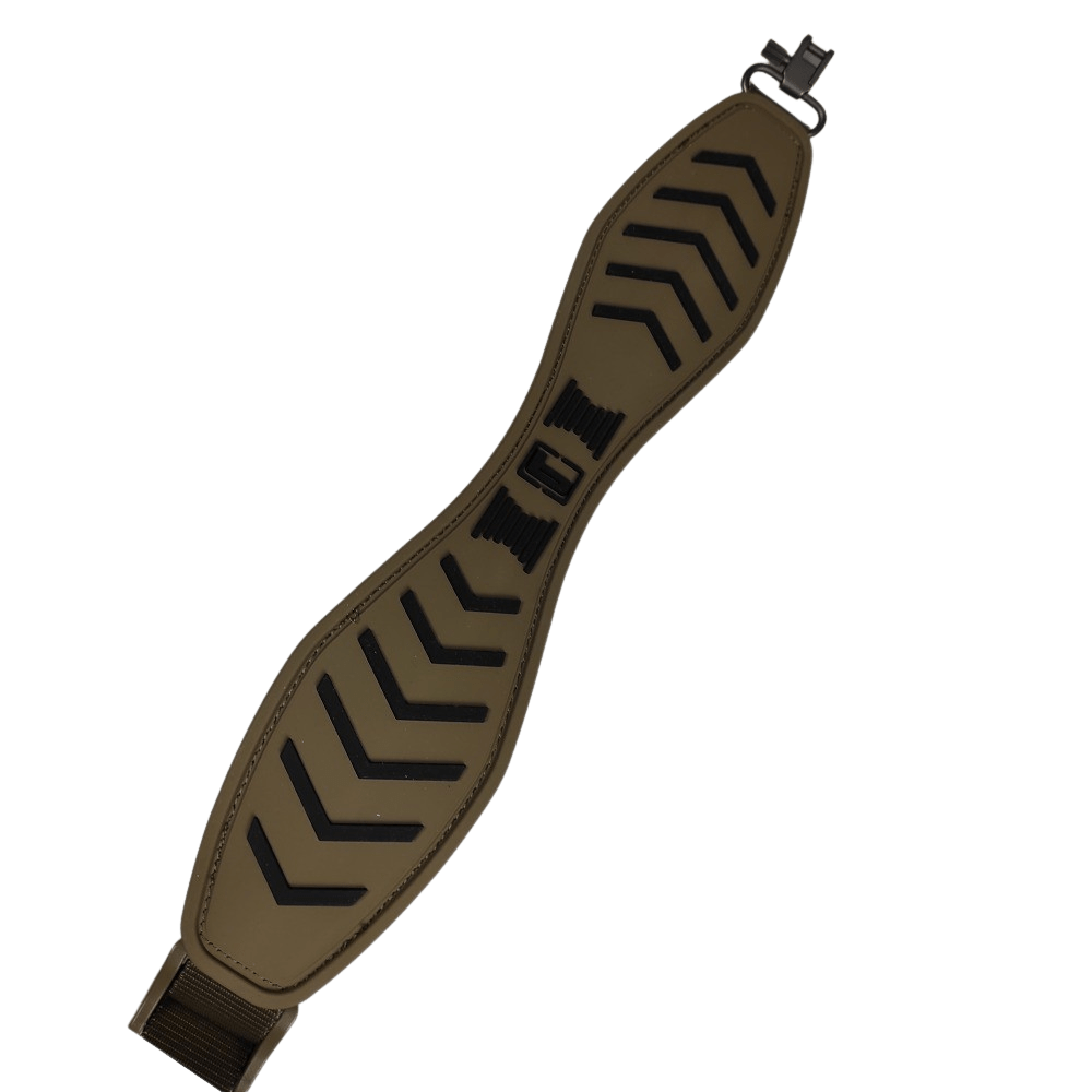Geværremmen har et skridsikkert design og gummien er kuldebestandig helt ned til -20 grader, og forbliver altså fleksibel i meget koldt vejr. Derudover er den meget støjsvag og derfor meget velegnet til pürchjagt også.