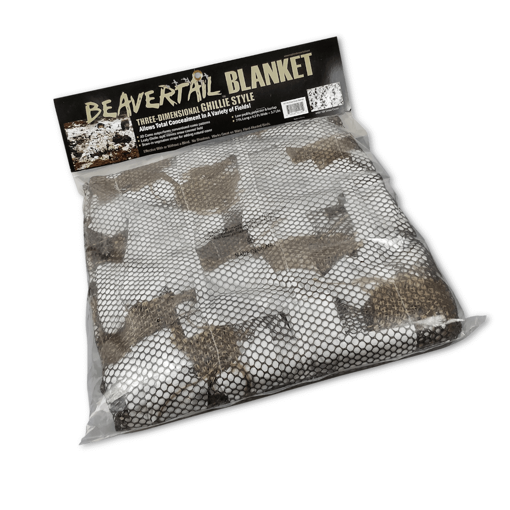 Beavertail 3D camo tæppe efterlader ingen skygger, og de påsyede vegetationsbånd gør det muligt at tilføje naturlige græsser og siv fra området, hvor du skal jage.