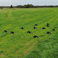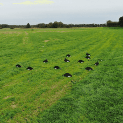 Vi anbefaler, at du laver en opstilling med silhuetterne tæt på dit liggeskjul. Det er en effektiv måde at sløre skjulet, da gæssene vil være fokuserede på de mange artsfæller, der går der for at æde.