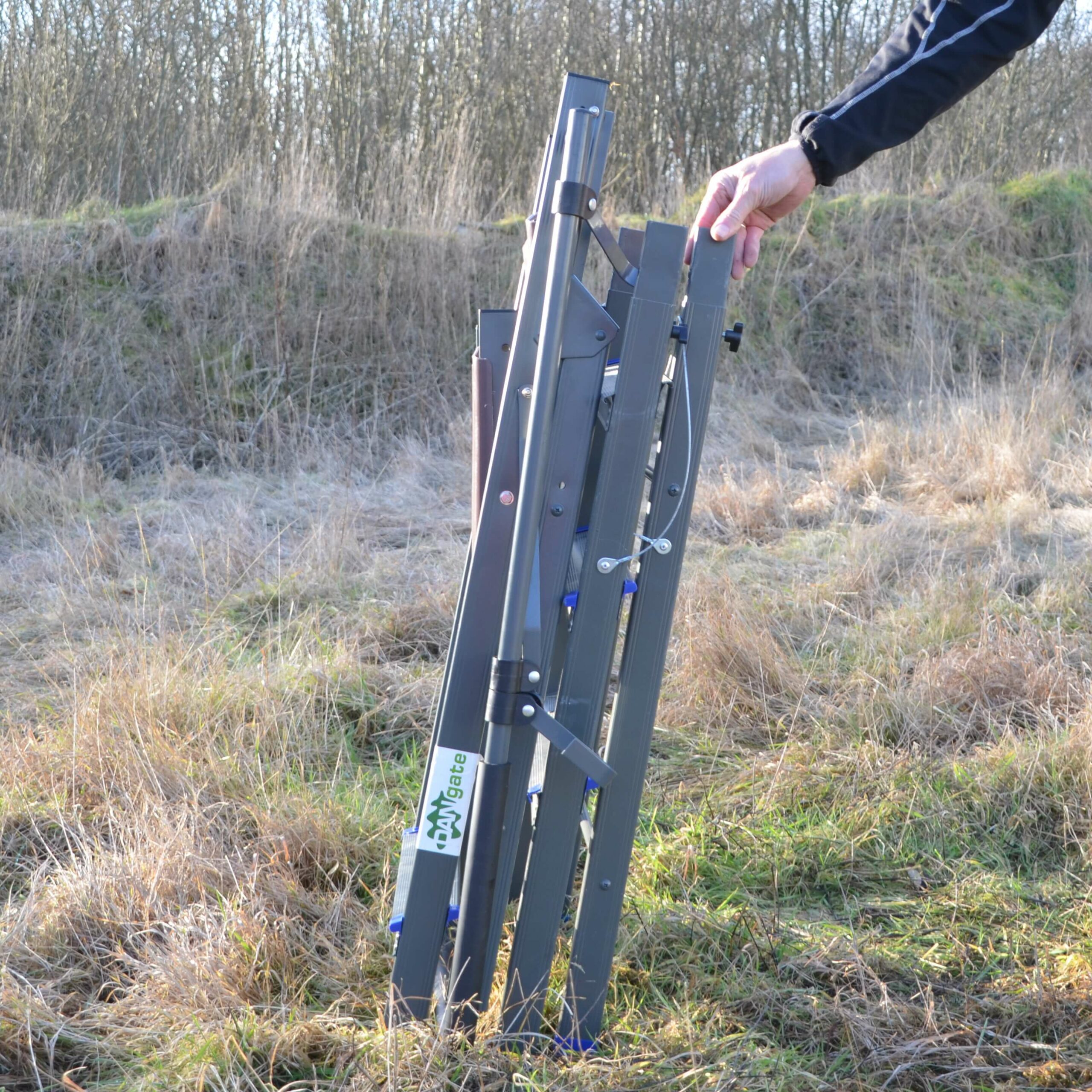 Jagtstigen kan hurtigt og uden støj sættes op på den fortrukne placering. Hvis du vil sidde forskellige steder på anstandsjagten, så behøver du kun denne ene stige. Stigen har et behageligt, formstøbt sæde og en god rygstøtte.