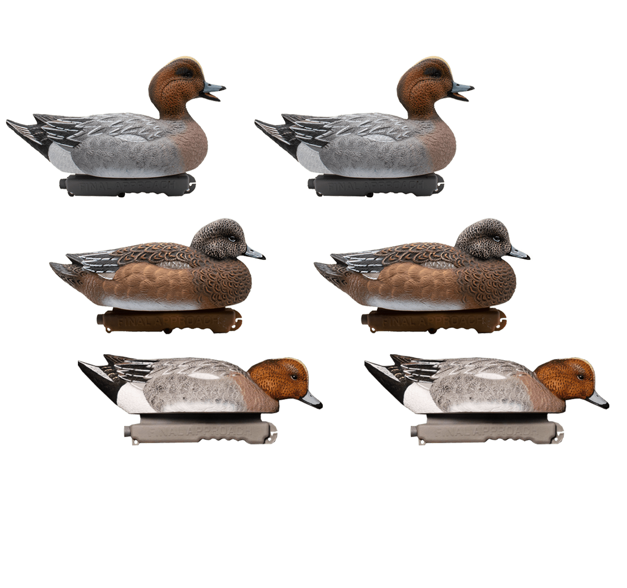 Flotte pibeænder / Brunnakker i de europæiske farver fra amerikanske Final Approach. Lokkeænderne er fremstillet i naturlig størrelse og er derfor meget synlige for trækkende ænder.