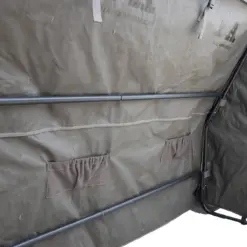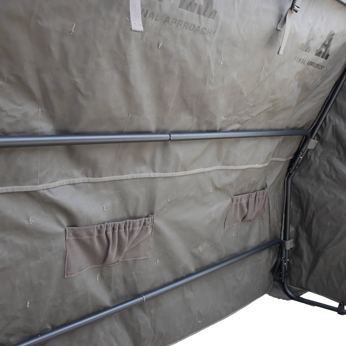 De overlappende sidedøre sikrer at jeres tilstedeværelse er helt skjult fra alle sider, og på indersiden finder du både geværstøtter og lommer til opbevaring af lokkekald, snacks mv.