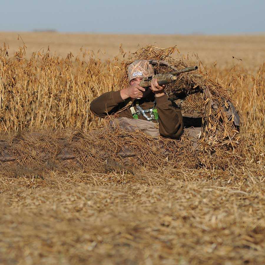 Du sparer kostbar tid på at gå rundt og lede efter egnede camouflagematerialer i naturen. Når skjulet er camoufleret, er du klar til jagt hele sæsonen.