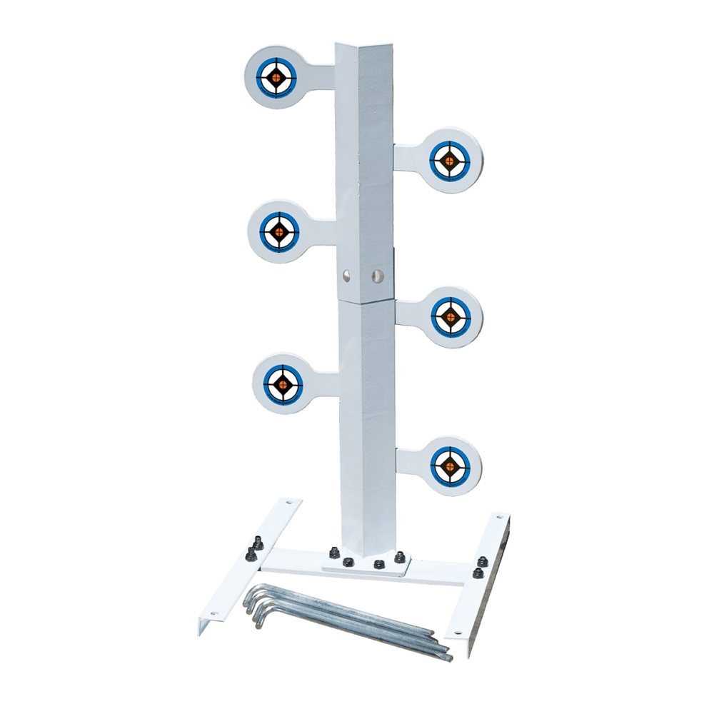 De 6 målskiver svinger fra højre mod venstre eller fra venstre mod højre, og skiverne kommer automatisk tilbage på plads ved hjælp af en fjeder mekanisme.