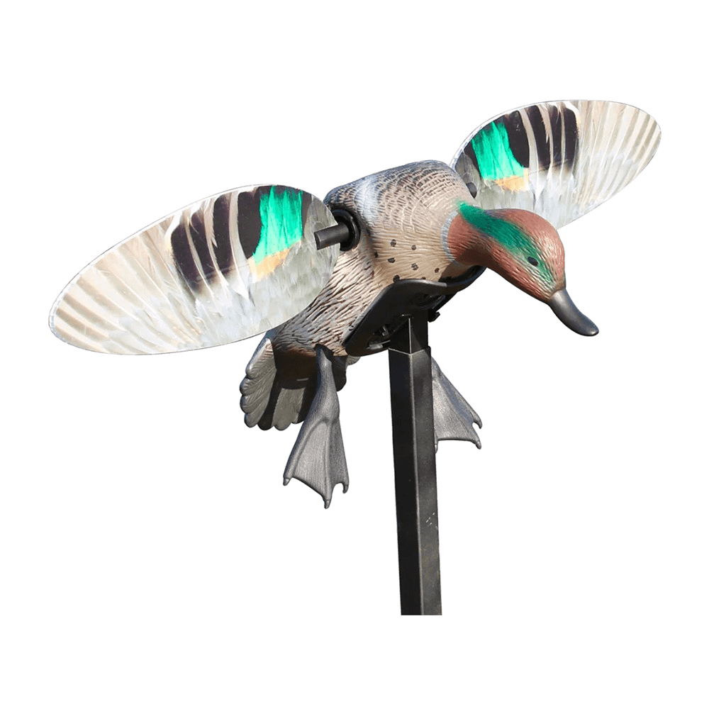 De roterende vinger efterligner en krikand ved landing med den naturtro bagroterende vinge bevægelse, der effektivt fanger trækkende ænders opmærksomhed.