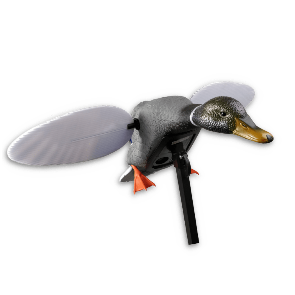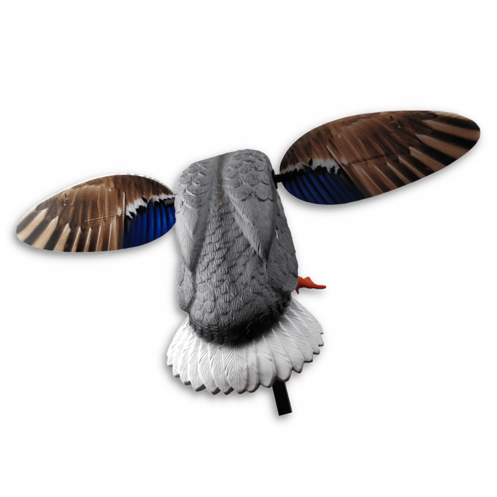 De roterende vinger efterligner en gråand ved landing med den naturtro bag roterende vinge bevægelse, der effektivt fanger trækkende ænders opmærksomhed.
