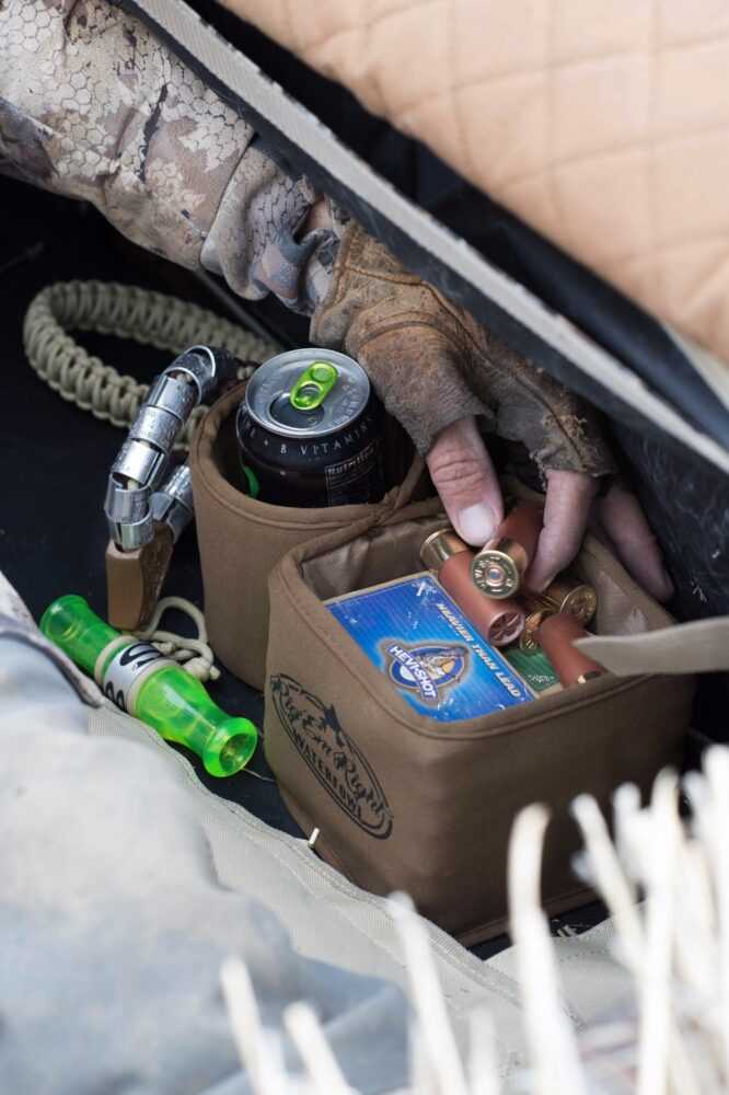 Denne smarte neopren konsol fra Rig’Em Right er perfekt til opbevaring af drikkevarer, ammunition, lokkekald mv., mens du ligger i skjul.