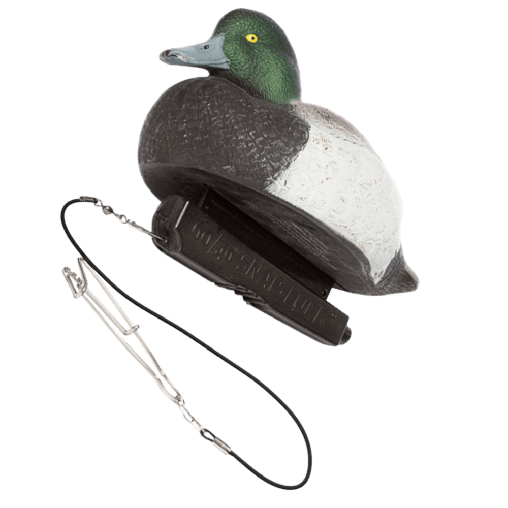 Lokkefuglen forbindes til den korte dropline med den mindre rustfrie svivel med hægte, og herefter kan det hele kobles af og på langlinen med et snuptag.