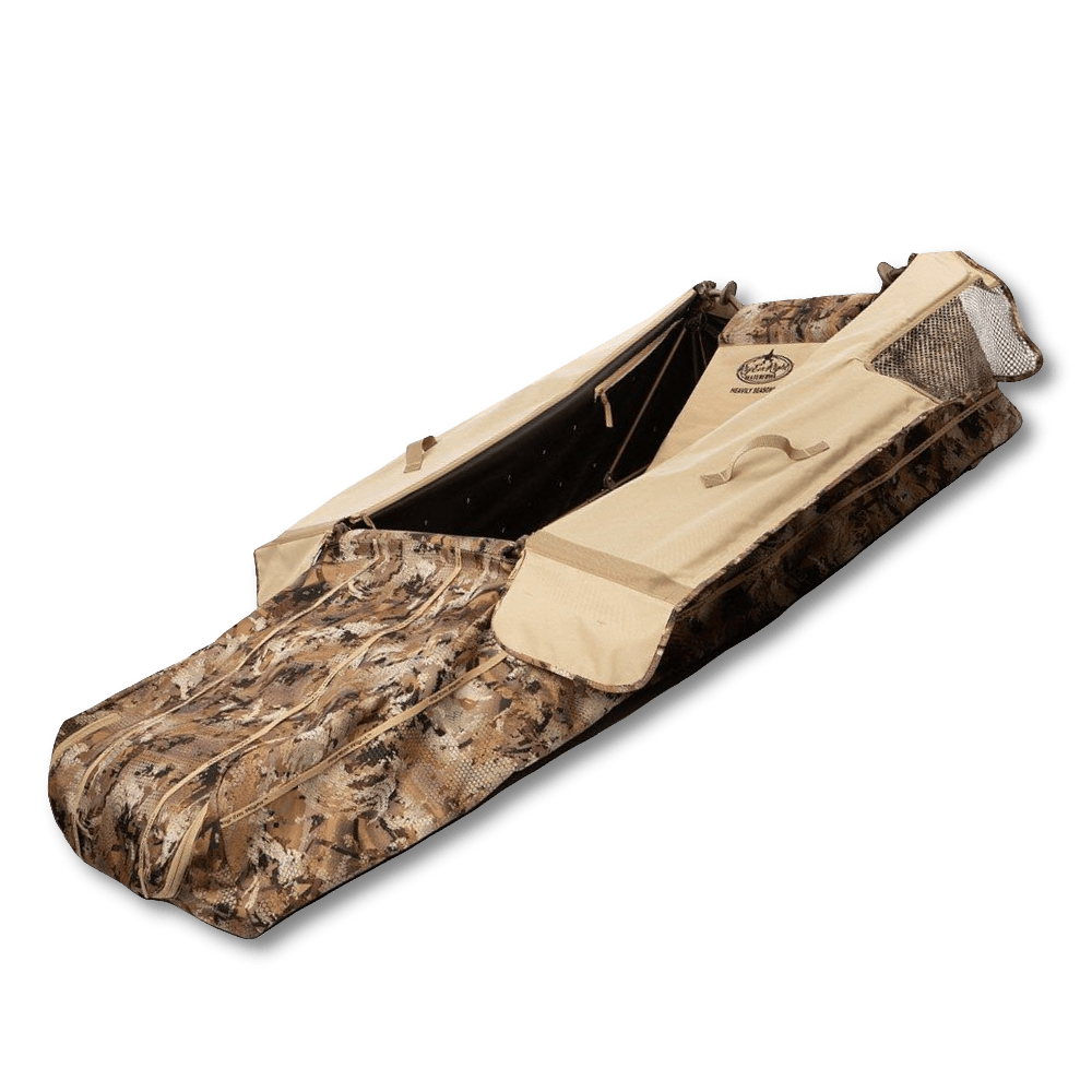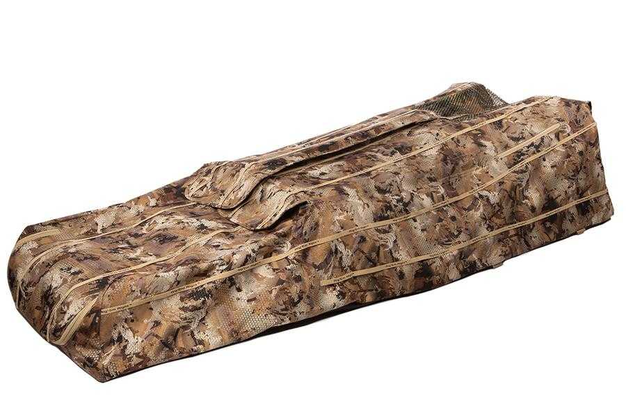 Skjulet har et dejligt polstret ryglæn og nakkestøtte i flere lag, så din gåsejagt bliver yderst komfortabel og det rummelige interiør giver dig mobilitet og god plads til opbevaring. Der er selvfølgelig huller til brug af gåseflag og en lynlås i fodenden for nem rengøring.