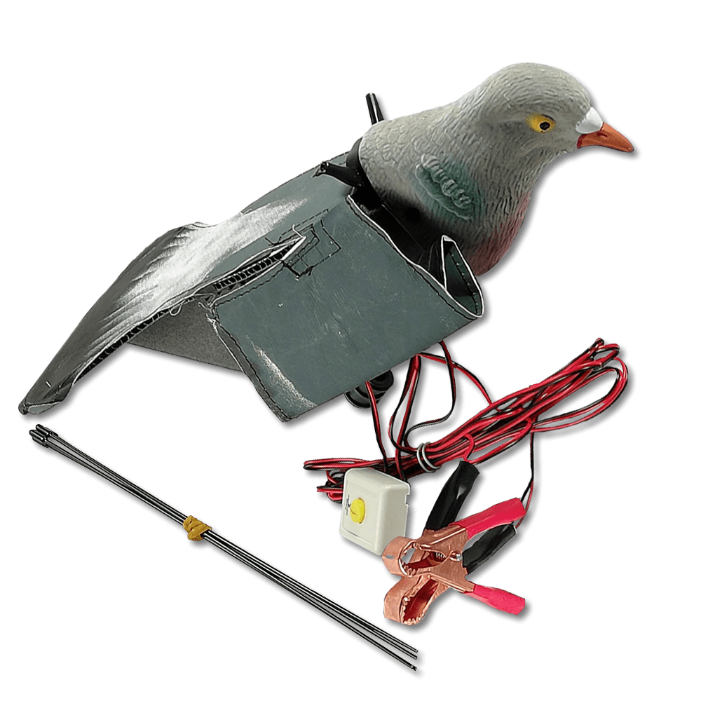 Den indbyggede timer har et ca. 2 meter langt kabel, så du kan sidde i skjulet og tænde og slukke lokkeduen eller sætte den på “periodisk” for at få vingerne til at flappe i et tilfældigt interval.