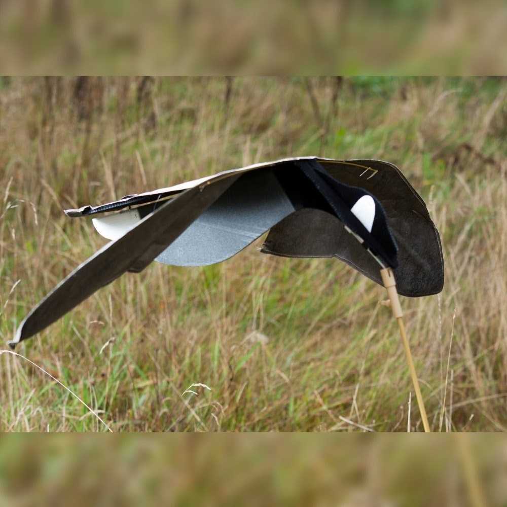 Der medfølger en 2-delt glasfiber stok, så lokkefuglen sidder ca. 1 meter over jorden, og vingerne kan flagre i vinden.