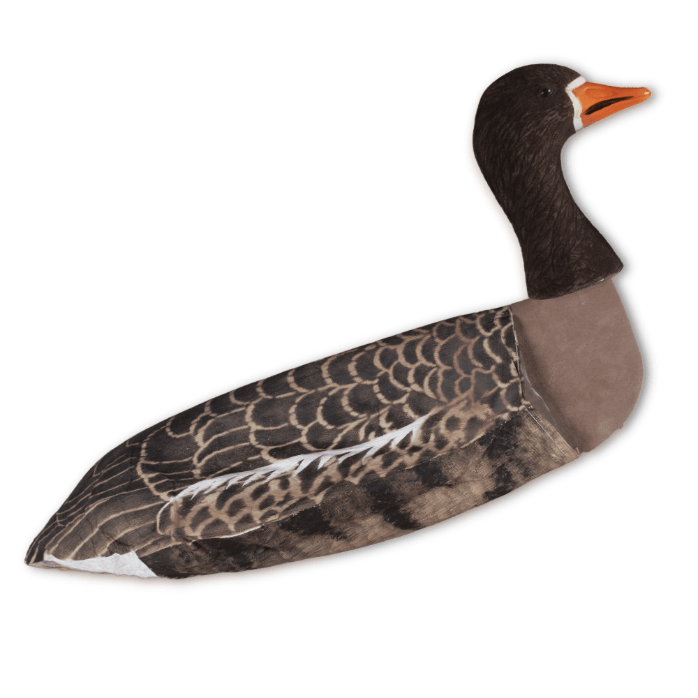 Lokkegæssene har oprejst hoved i plast med flock, der er en blød belægning, som primært skal forhindre genskin og give lokkerne et realitsisk udseende.