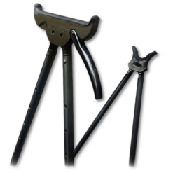 Denne 1 benet skydestok er let at have med sig på farten og den giver en fint anlæg til riflen. Dette gør den perfekt til pürchjagt, jagt i tæt skov, og generelt set riffeljagt hvor oppakningen skal være let. Dens monopod-design er lavet i gummi og støtter dermed dit våben, uden at skramme det. Skydestokken har desuden et skumhåndtag, en håndledsrem, og en elastiksnor til at fastgøre omkring riffelpiben. Med et par quick-release benlåse kan det kraftige letvægts aluminiumskaft hurtigt justeres fra 43 cm til 91 i længden, hvilket gør stokken særdeles velegnet til siddende skydestilling.
