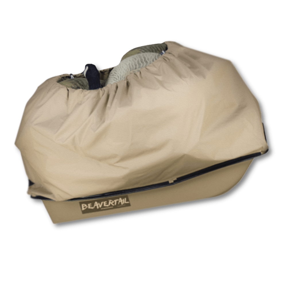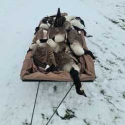 Slæden er udført i samme høje og kraftige kvalitet, som du kender fra Beavertails både, og den er helt perfekt til at slæbe efter båden med ekstra lokkefugle mv. Med slæden får du en praktisk og slidstærk canvas pose, så du kan fragte op til 24 full body lokkegæs i slæden (se video herunder).