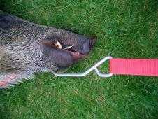 Enkelt og praktisk træksnor med stål krog til bjærgning og transport af større vildt som f.eks vildsvin.