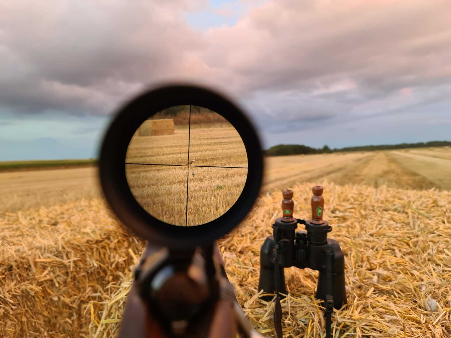 Et godt set-up på en nyhøstet kornmark – bemærk critteren i kikkertsigtet