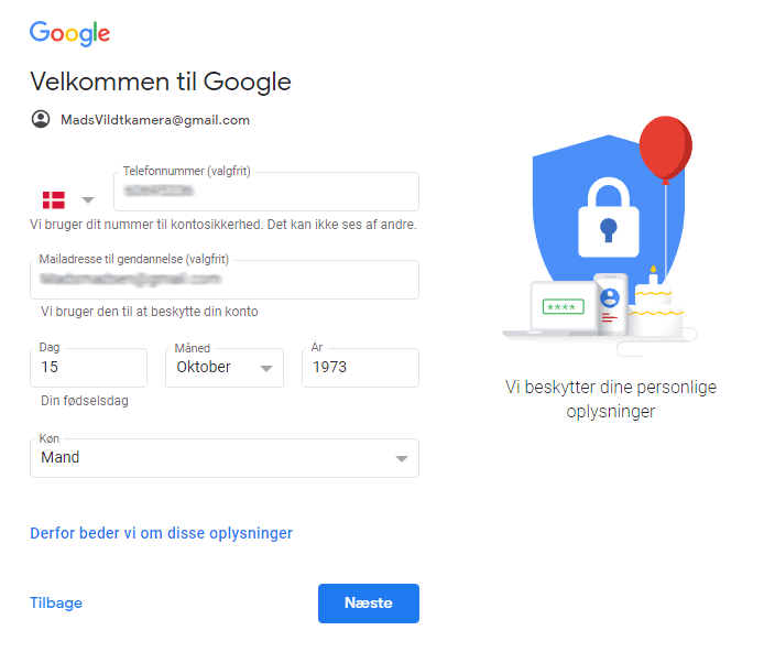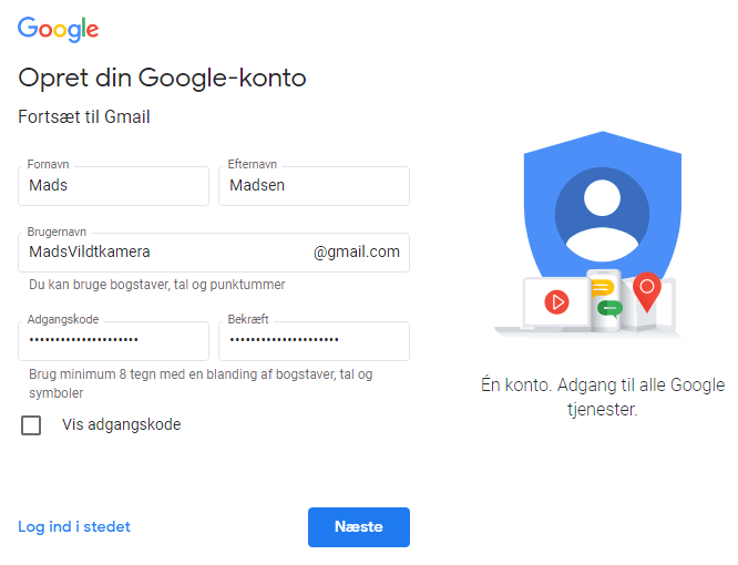 Vælg dit brugernavn til din nye e-mail f.eks. “MadsVildtkamera@gmail.com”