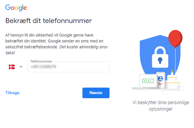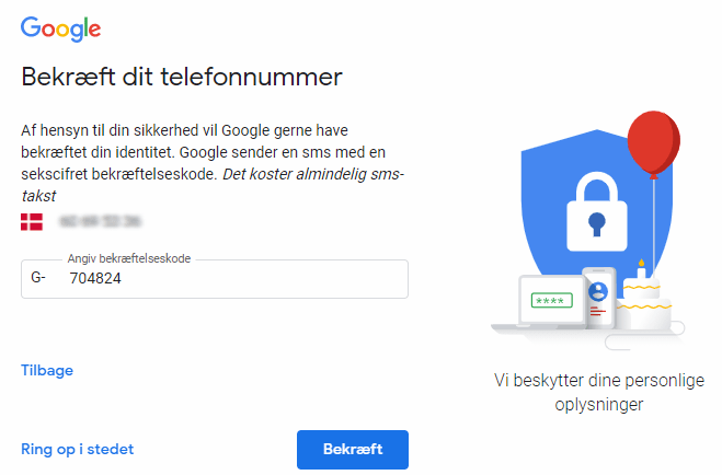 Du modtager nu en SMS fra Google (koster alm. sms-takst) med en seks cifret kode som du skal indtaste.
