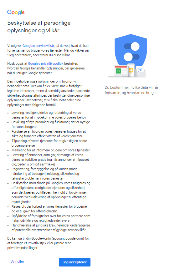 Scroll ned til bunden af siden og tryk på knappen ”Jeg accepterer”